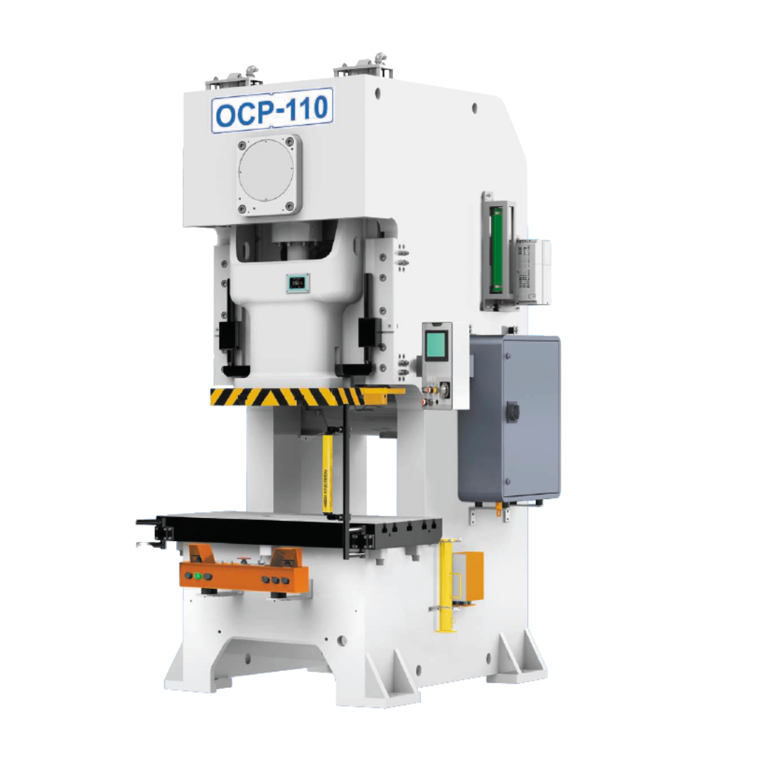 A prensa OCP-EW da Chin Fong é uma máquina de corpo tipo “C”, projetada com estrutura soldada em aço de alta resistência e guias com seis faces para garantir precisão e durabilidade no processo de estamparia. Equipada com eixo excêntrico em aço forjado, embreagem e freio a óleo com acionamento eletropneumático, a OCP entrega estabilidade mesmo sob altas cargas e velocidades. O modelo conta com regulagem automática da altura do martelo, sistema hidráulico de proteção contra sobrecarga, CLP com relé de segurança, barreiras de luz categoria 4, contador de golpes eletrônico e lubrificação motorizada a graxa. Totalmente conforme a NR-12, oferece desempenho confiável e seguro para aplicações em estamparia leve e média.
