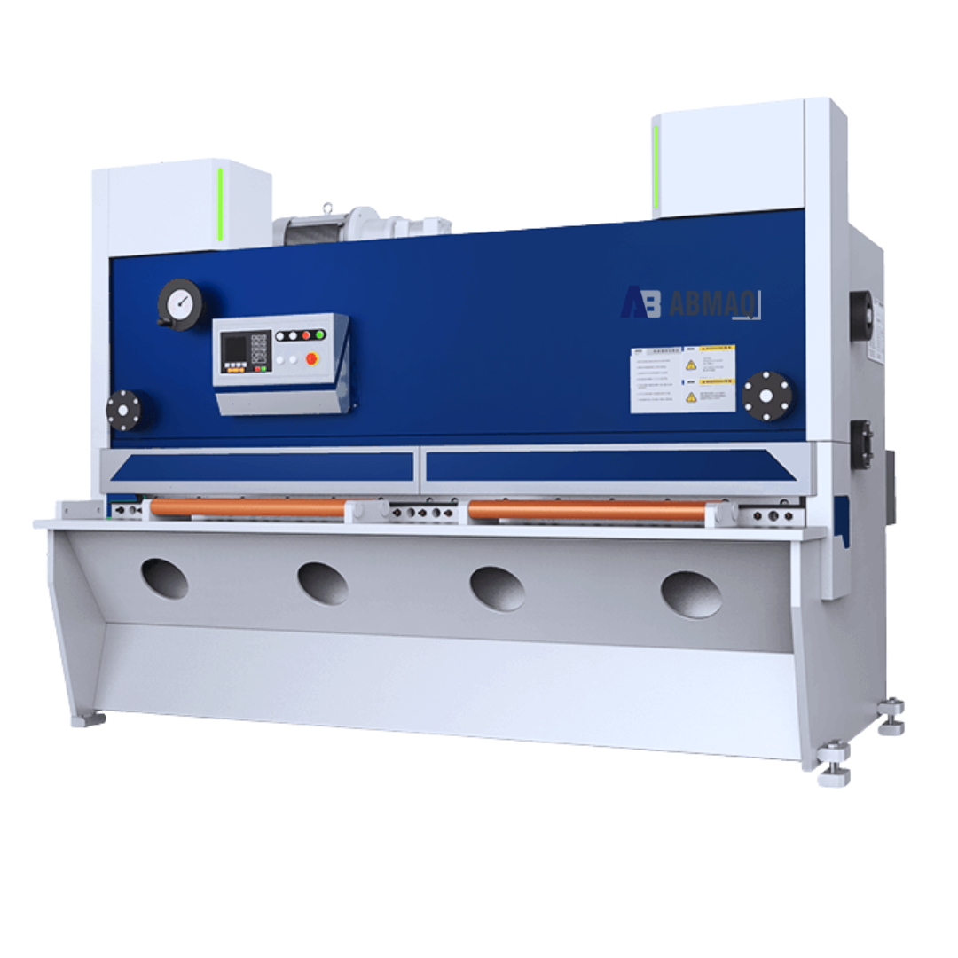 A GHV da ABMAQ é uma guilhotina hidráulica prismática de ângulo variável, indicada para cortes precisos em chapas metálicas com alta flexibilidade. Apresenta estrutura e porta-faca monobloco soldada, garantindo extrema rigidez. O sistema de corte prismático com ajuste de ângulo motorizado permite adequar o ângulo de corte conforme a espessura do material, minimizando torções e deformações em peças longas. A regulagem da folga entre lâminas é motorizada e pode ser controlada por CN/CNC, enquanto o batente traseiro motorizado com basculamento hidráulico facilita o posicionamento preciso e agiliza o setup.